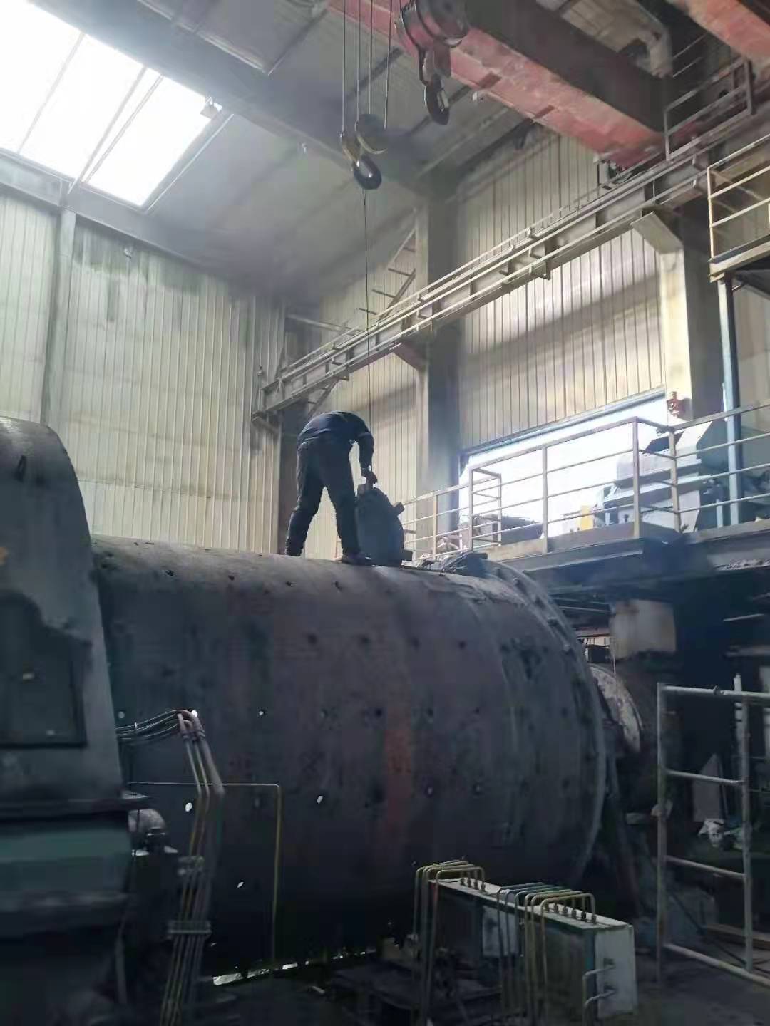 26日上午8時,開始對9號球磨機(jī)進(jìn)行停機(jī)倒鋼球作業(yè),相繼開始了一系列的拆裝工作。開始用行車自動模式進(jìn)行倒鋼球和拆卸作業(yè),隨著裝襯板難度和危險(xiǎn)系數(shù)的增大,后期行車采用人工手動模式作業(yè),通過這種倒行車的辦法,大大提高了工作效率,保證了作業(yè)的精準(zhǔn)和人員的安全。經(jīng)過65個小時的連續(xù)奮戰(zhàn),9號球磨機(jī)于3月1日凌晨1:25開機(jī)運(yùn)轉(zhuǎn)。