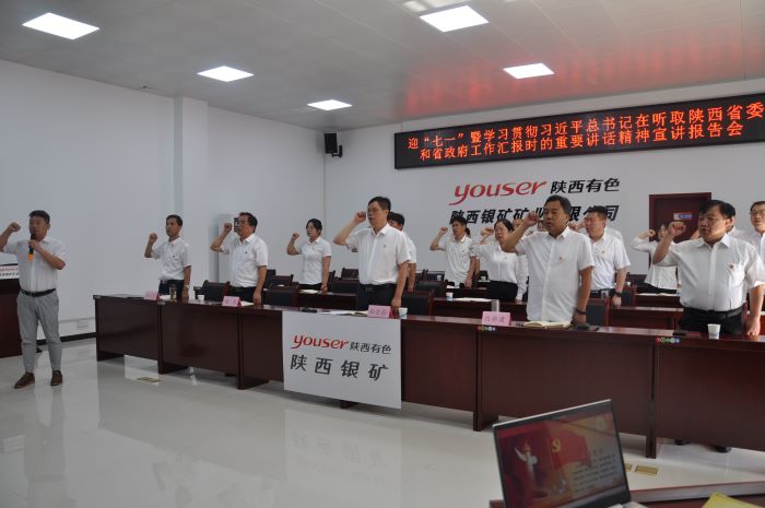 6月30日,陜西銀礦黨委舉行迎“七一”暨學習貫徹習近平總書記在聽取陜西省委和省政府工作匯報時的重要講話精神宣講報告會。報告會邀請陜西省委理論講師團成員方欣教授作專題宣講。會議以“現場+視頻”形式召開,報告會前,全體黨員合唱《義勇軍進行曲》,面對黨旗,預備黨員入黨宣誓,與會黨員重溫入黨誓詞。