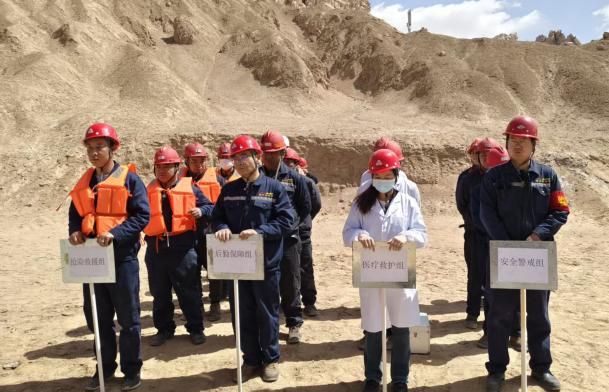 演練模擬因遭遇持續強降雨,山體滑坡堵塞尾礦庫排洪系統,庫內水位急劇上升,即將面臨漫壩造成環境污染事件。演練開始后,格爾木銀興公司安委會立即啟動應急預案,并及時向甲方相關部門報告險情,迅速成立現場應急救援指揮部,緊急調集搶險、醫療、警戒、后勤保障四支救援力量,快速趕赴事故現場開展救援。各應急救援小組嚴格依據應急預案和既定職責分工,各負其責,有條不紊地迅速展開疏散、警戒、應急物資及時到位,按預案處置措施現場施救,完成排洪系統的清理、壩頂加固,險情解除。